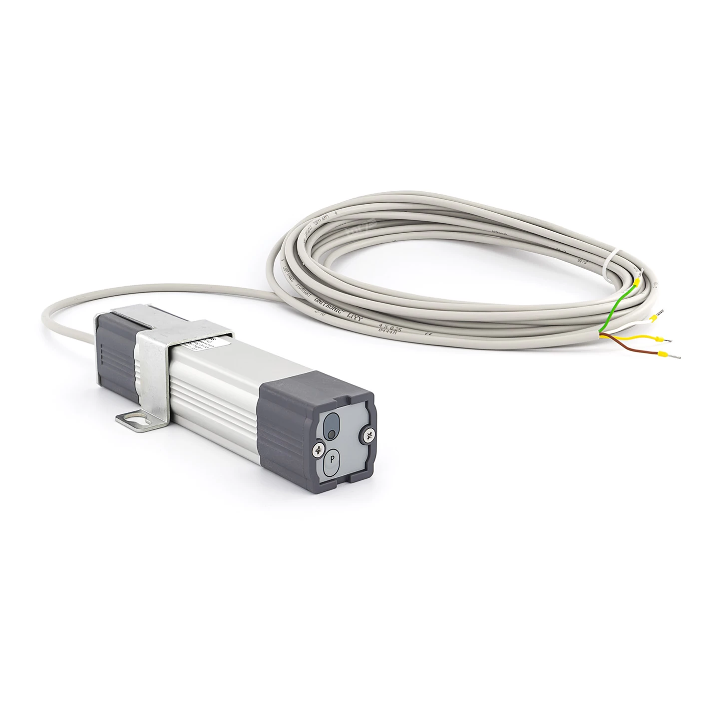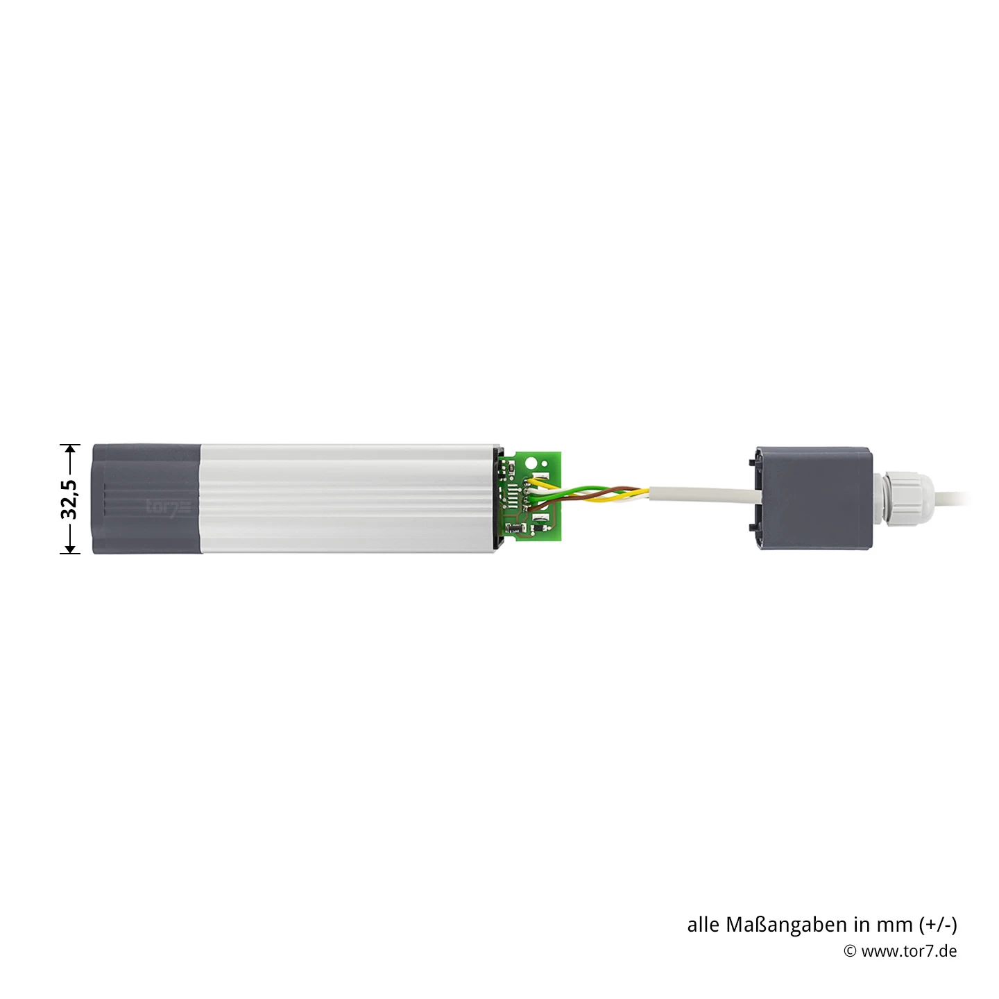 Der HEI 868-BS verfügt über eine stabile Reichweite und kann bei baulich schwierigen Umständen einen sicheren Empfang gewährleisten. Der Empfänger ist in einem Aluminiumgehäuse mit Kunsttoffkappen untergebracht und erfüllt die Bedingungen für die Schutzart IP 65. Das Gerät ist also berührungssicher, staubdicht und geschützt vor Strahlwasser. Es hält zudem Temperaturen von -20 °C im Winter bis zu +60 °C im Sommer aus. Der HEI 3 868-BS ist damit ideal für die Anbringung im Freien geeignet. Bei einer Größe von 140 mm x 30 mm x 32 mm (B x H x T) und einer Betriebsspannung von 24 V DC (Gleichstrom) verfügt der Empfänger über eine 7 m lange und 4-adrige Anschlussleitung.