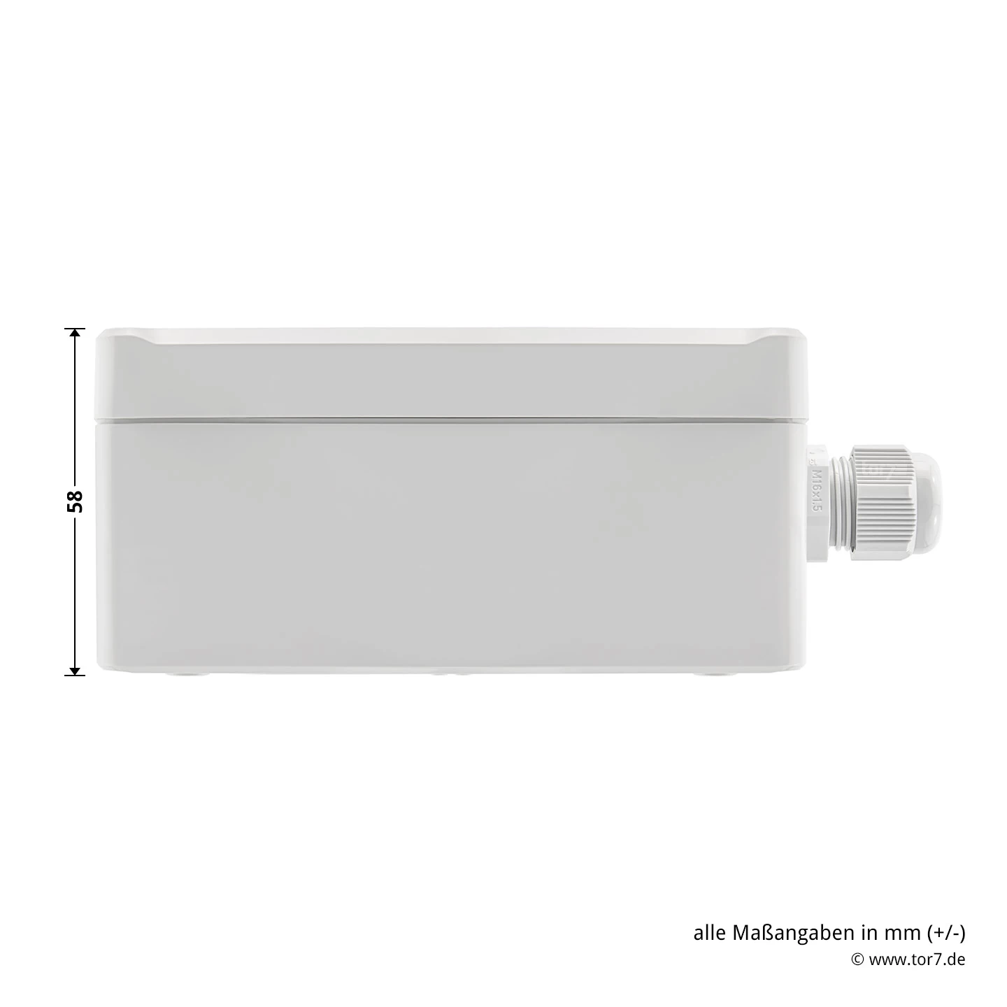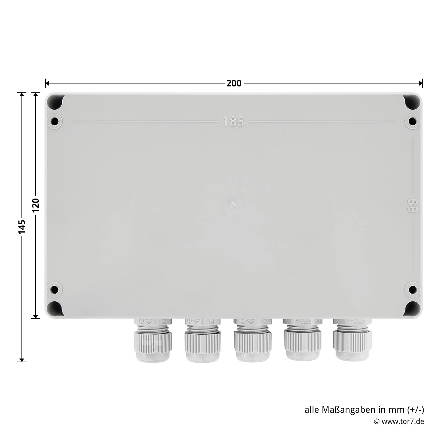 - Maße (BxHxT): 200 x 120 x 60 mm (ohne Verschraubung)