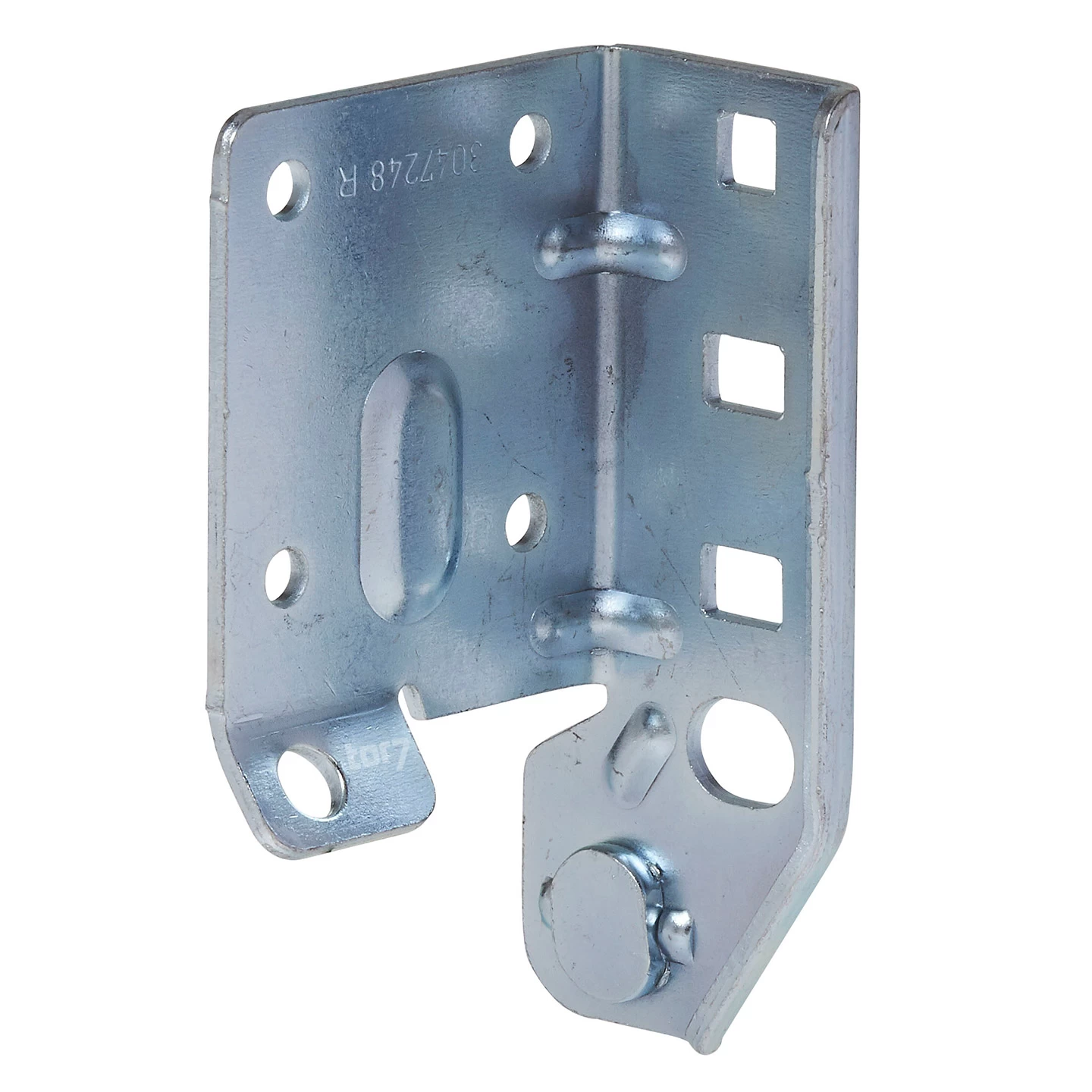 Das Hörmann Aufsetzstück wird bei Sektionaltoren der aktuellen Baureihe 40 mit N-, L-, H- oder BL-Beschlag für die Montage an der Bodensektion benötigt. Die hier angebotene Ausführung eignet sich für die rechte Torseite. Das Bauteil trägt zur ordnungsgemäßen und sicheren Torbedienung bei und sollte daher regelmäßig auf Korrosion oder Beschädigungen überprüft werden. Das Aufsetzstück dient als Aufnahme für den unteren Rollenhalter und zur Sicherung der Kausche vom Drahtseil des Torsionsfederaggregats. Die Befestigung wird mit der Hörmann Sechskant-Blechschraube, mit Sperrzahn, A 6,5 x 16 mm vorgenommen.