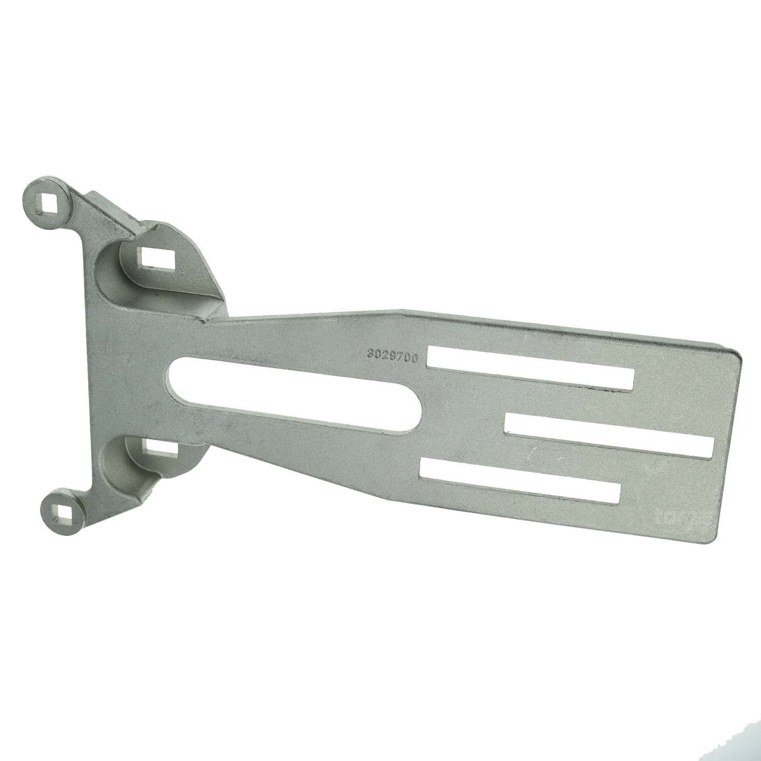 Das Hörmann Auslegeranschlussstück wird bei Sektionaltoren der Baureihe 20 verwendet, die mit einem H-Beschlag, also höhergeführten Laufschienen, ausgestattet sind. Dieses Bauteil sorgt für eine ordentliche Verbindung zwischen der oberen Laufschiene und der Zarge bei Toren der entsprechenden Baureihe. Das Auslegeranschlussstück aus verzinktem Stahlblech ist somit wichtiger Bestandteil der Torkonstruktion und sollte regelmäßig auf Korrosionsansatz und Beschädigungen überprüft werden. Verwendbar ist dieses Ersatzteil für die rechte oder linke Torseite. Die Befestigung erfolgt mit der Hörmann Flachrundschraube M8 x 22, verzinkt und der Hörmann Sechskantmutter M8 mit Hohlflansch.