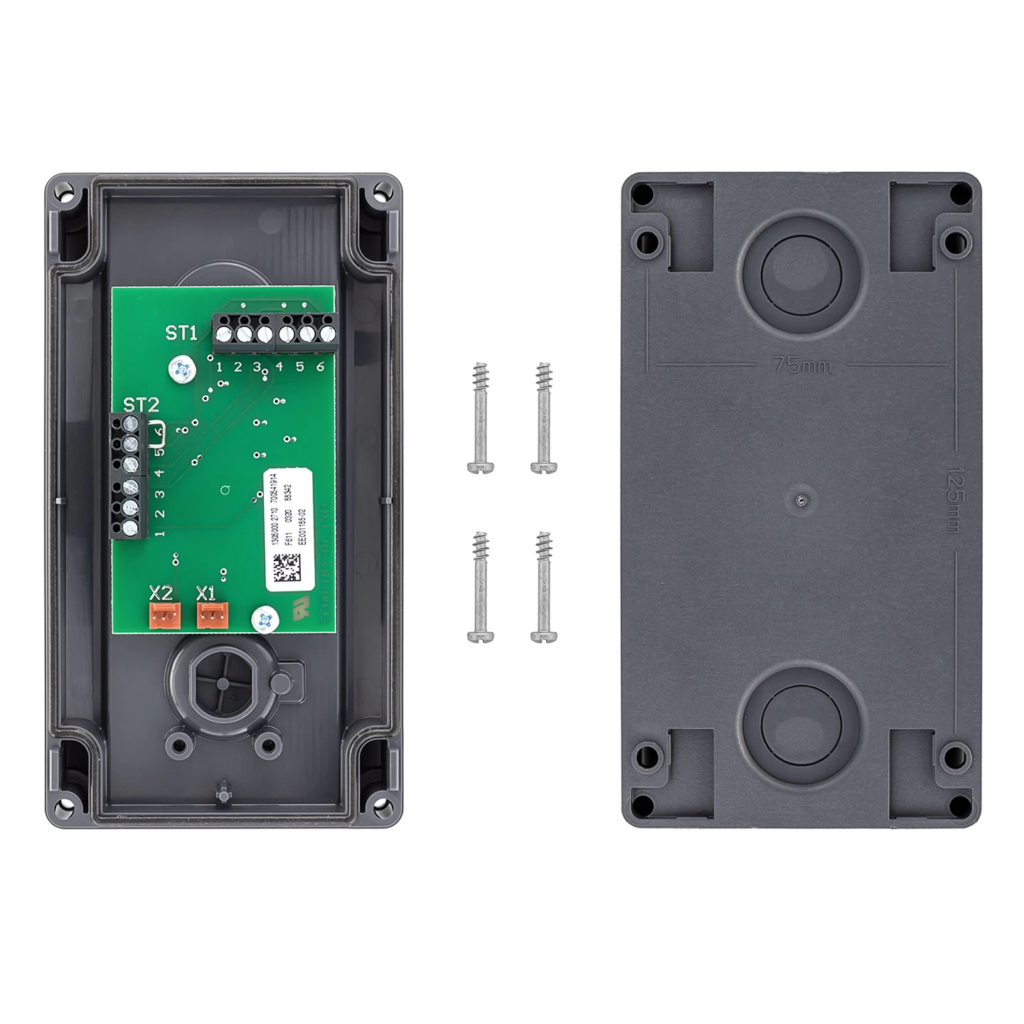 Der Hörmann Drucktaster DTH-R ist ein robuster und industriell einsetzbarer Drucktaster mit den 3 Impulstasten Auf, Stopp und Zu. Zum Einsatz kann dieser unter anderem an den bei Industrietoren eingesetzten Wellenantrieben WA 300 und WA 400 oder dem Kettenantrieb ITO 400 kommen. Auch die Verwendung an Garagen-, Dreh- und Schiebetoren ist möglich. Der Anschluss erfolgt mit der 6-adrigen Hörmann Anschlussleitung ASL. Die maximale Leitungslänge von 100 Metern zur Steuerung sollte nicht überschritten werden. Zusätzlich lassen sich bis zu 3 Drucktaster miteinander verbinden.
