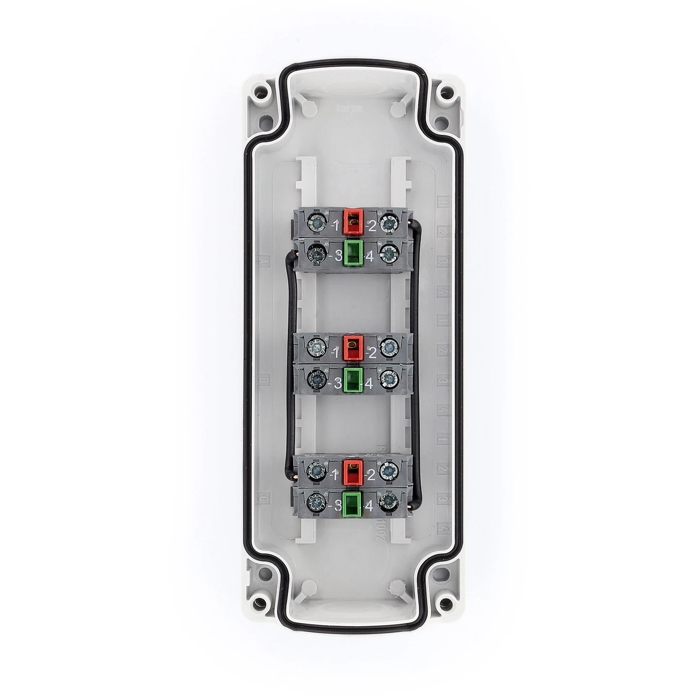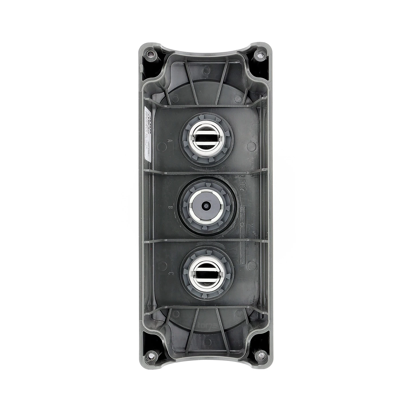 Der Hörmann Drucktaster DTNA 30 dient als zusätzliches Bedienelement für den Hörmann Schiebetorantrieb STA 400 und somit für industrielle Zufahrten. Ausgerüstet mit der Schutzklasse IP 65 ist der Taster staubdicht, bietet Schutz vor starkem Strahlwasser und kann somit problemlos im Außenbereich montiert werden. Die Bedienung erfolgt über die Tasten Auf und Zu. Die zusätzliche Bedientaste Halt ist rastend, d. h. bei Betätigung rastet der Taster ein und wird erst durch Ziehen wieder entsperrt. Erst dann kann der Taster wieder verwendet werden. Zum Schutz vor unbefugtem Zugriff ist der Drucktaster mit einem Miniaturschloss am Halttaster ausgestattet und wird mit 2 Schlüsseln geliefert. Alle verwendeten Materialien und Komponenten sind aus hochwertigen und langlebigen Materialien gefertigt und sorgen so für einen praxistauglichen, dauerhaften Einsatz.