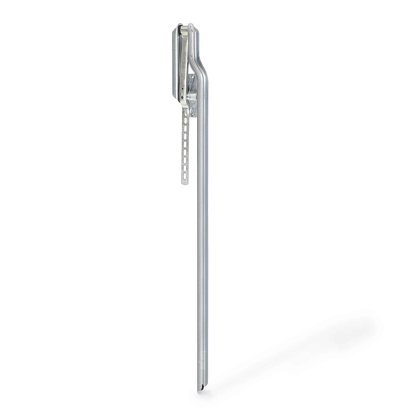 Die Besonderheit bei Berry-Schwingtoren ist, dass sich deren einteiliges Torblatt über einen speziellen Mechanismus einfach unter die Decke fahren lässt. Hierfür gibt es einerseits Laufrollen mit denen das Tor oben im Rahmen eingehängt ist und anderseits einen beweglichen Hebelarm, der das Tor von unten stützt. Die Halterung dieses Hebelarms, der Lagerbock, befindet sich dabei auf etwa der halben Torhöhe. Die entsprechende Baugruppe aus Arm und Halterung ist nun auch als Hörmann Ersatz-Hebelarm inkl. Adapterplatte, BRH 1920 mm erhältlich.