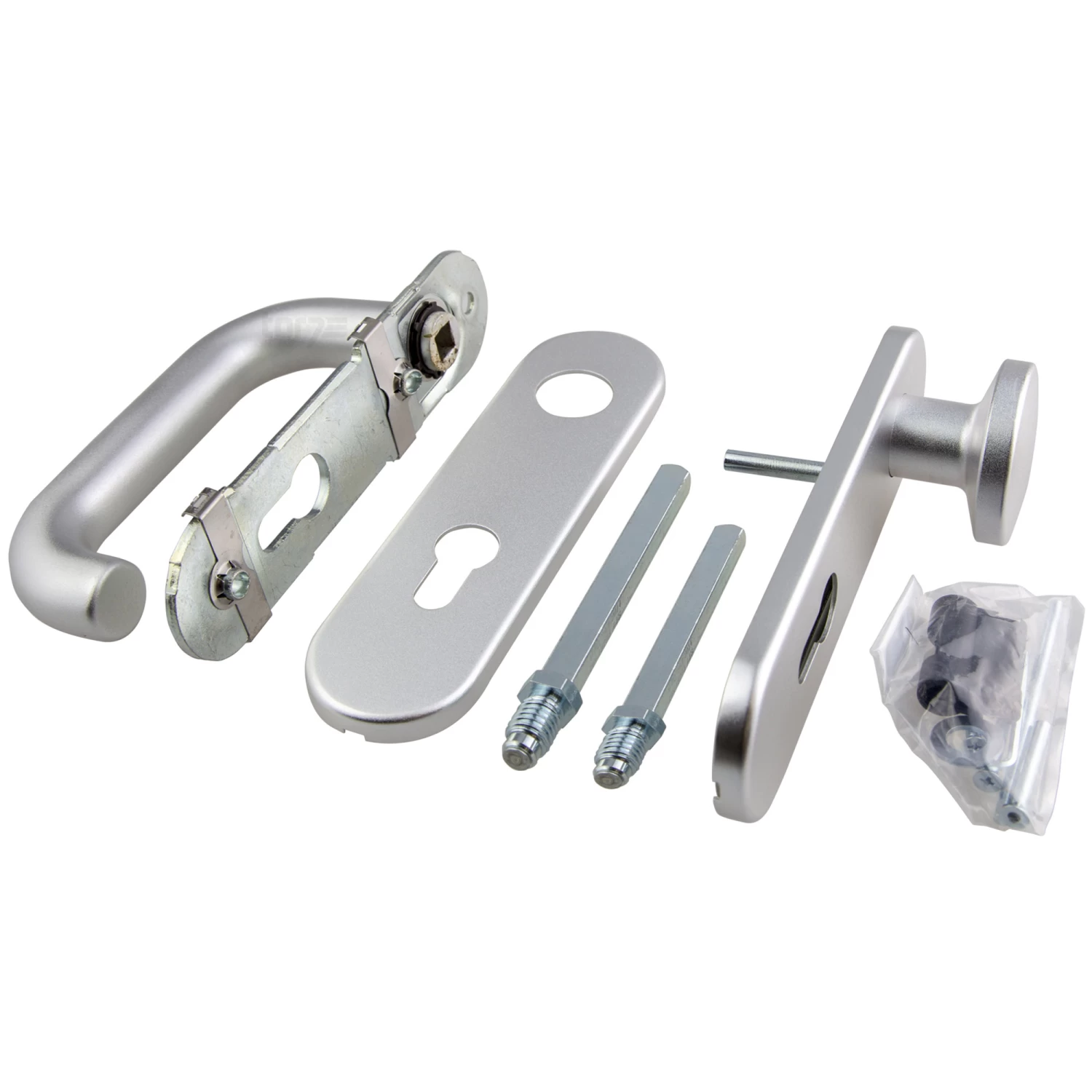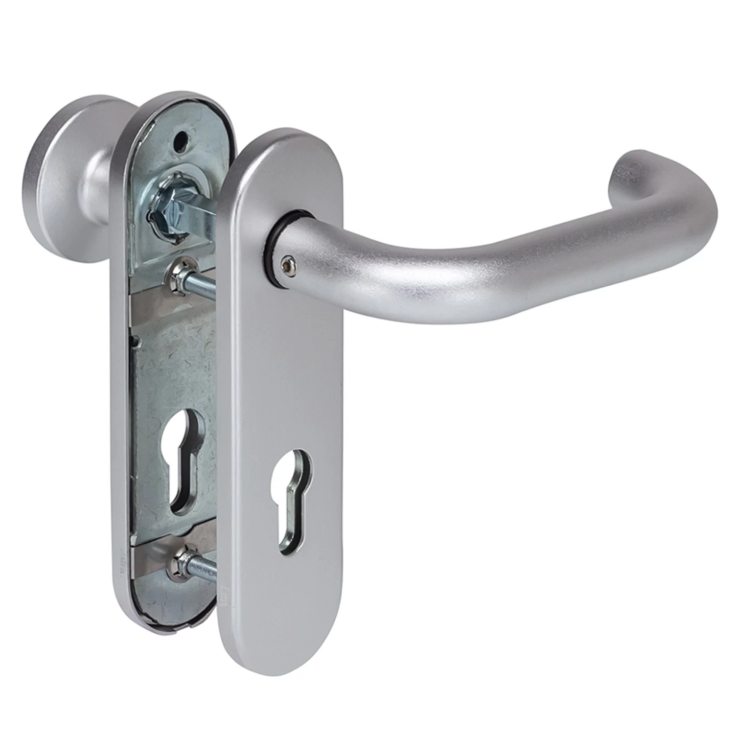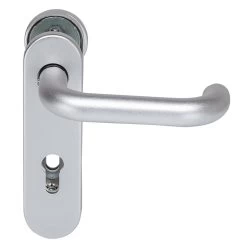 Die Hörmann Feuerschutz-Wechselgarnitur Typ D110 PZ, Aluminium kann beispielsweise an der Hörmann Brandschutztür T30 mit Zulassung verwendet werden. Durch das eloxierte Aluminium wirkt sie besonders ansprechend, ist zudem äußerst stabil und eignet sich für den Innen- oder Außeneinsatz.