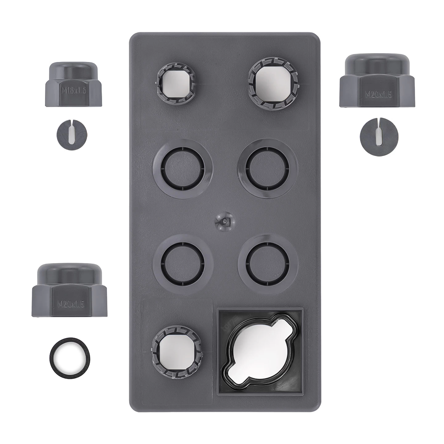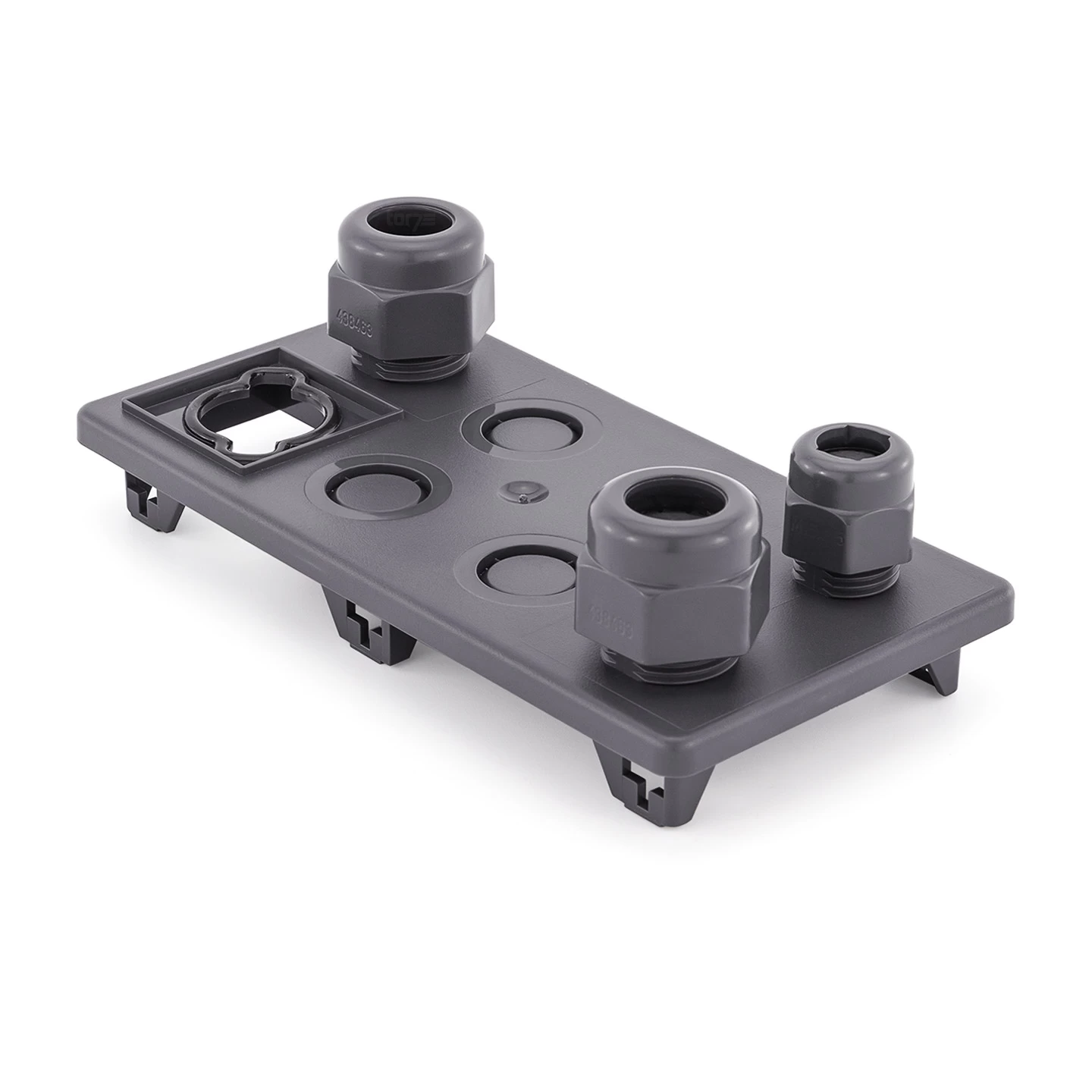 Mit dem Hörmann Flanschdeckel unten sind die Gehäuse verschiedener Hörmann Industrietorsteuerungen ausgestattet. Hierzu zählen beispielsweise die Steuerungen 545, 560, A / B 435, A / B 460 und viele weitere Steuerungstypen, die Ihren Einsatz im industriellen Bereich haben. Der Flanschdeckel wird unten am Steuerungsgehäuse eingesetzt und schützt die Steuerungselektronik vor dem Eindringen von Fremdkörpern, Schmutz und Feuchtigkeit. Zudem ist der Deckel mit den notwendigen Kabeldurchführungen ausgestattet, wobei die Kabelverschraubungen bei diesem Ersatzteil bereits im Lieferumfang enthalten sind. Die Netzzuleitung ist hierbei nicht enthalten und muss bei Bedarf separat bestellt werden. Die Befestigung am Gehäuseunterteil erfolgt durch einfaches Einklipsen. Eine regelmäßige Prüfung des Steuerungsgehäuses und der entsprechenden Anschlüsse stellt eine ordnungsgemäße Torfunktion, sowie den effektiven Schutz der sensiblen Steuerungstechnik sicher.