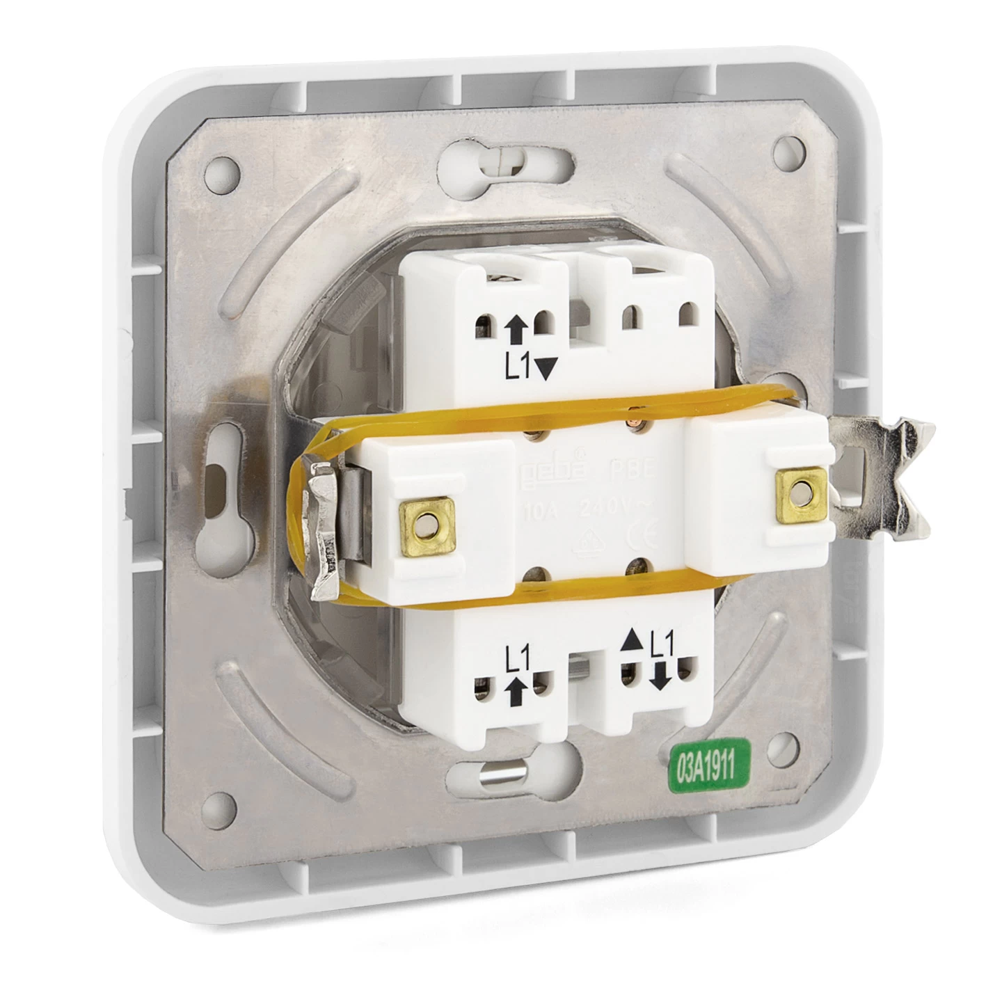 Der Innentaster TUPS 2 eignet sich insbesondere für die Montage an einem Hörmann 2-Kanal-Funk-Unterputzsender HSU 2, BiSecur oder einem Hörmann 2-Kanal-Funksender-Unterputz FUS 2, BiSecur. Man kann ihn aber auch an den Vorgängermodellen Hörmann 2-Kanal-Sender Unterputz HSU 2, 868 MHz und Hörmann 2-Kanal-Funk-Unterputzsender FUS 2, 868 MHz installieren. Die Gestaltung in hochglanz weiß verleiht ihm eine gewisse Eleganz und unterstreicht seine Eignung nicht nur für Garagen, sondern auch für Wohnräume. Hier kann man den TUPS 2 gemeinsam mit einem Unterputzsender in der gleichen Unterputzdose montieren. Mit seinen beiden Tasten kann man dann die am Unterputzsender angelernten Funkimpulse auslösen und 2 verschiedene Antriebe, Funktionen oder andere mit einem passenden Hörmann Empfänger verbundene Geräte ansteuern. Zusätzlich kann der TUPS 2 auch direkt per Kabel an den Tastereingang von einem Hörmann Antrieb oder einem Fremdantrieb angeschlossen werden und diesen bedienen.