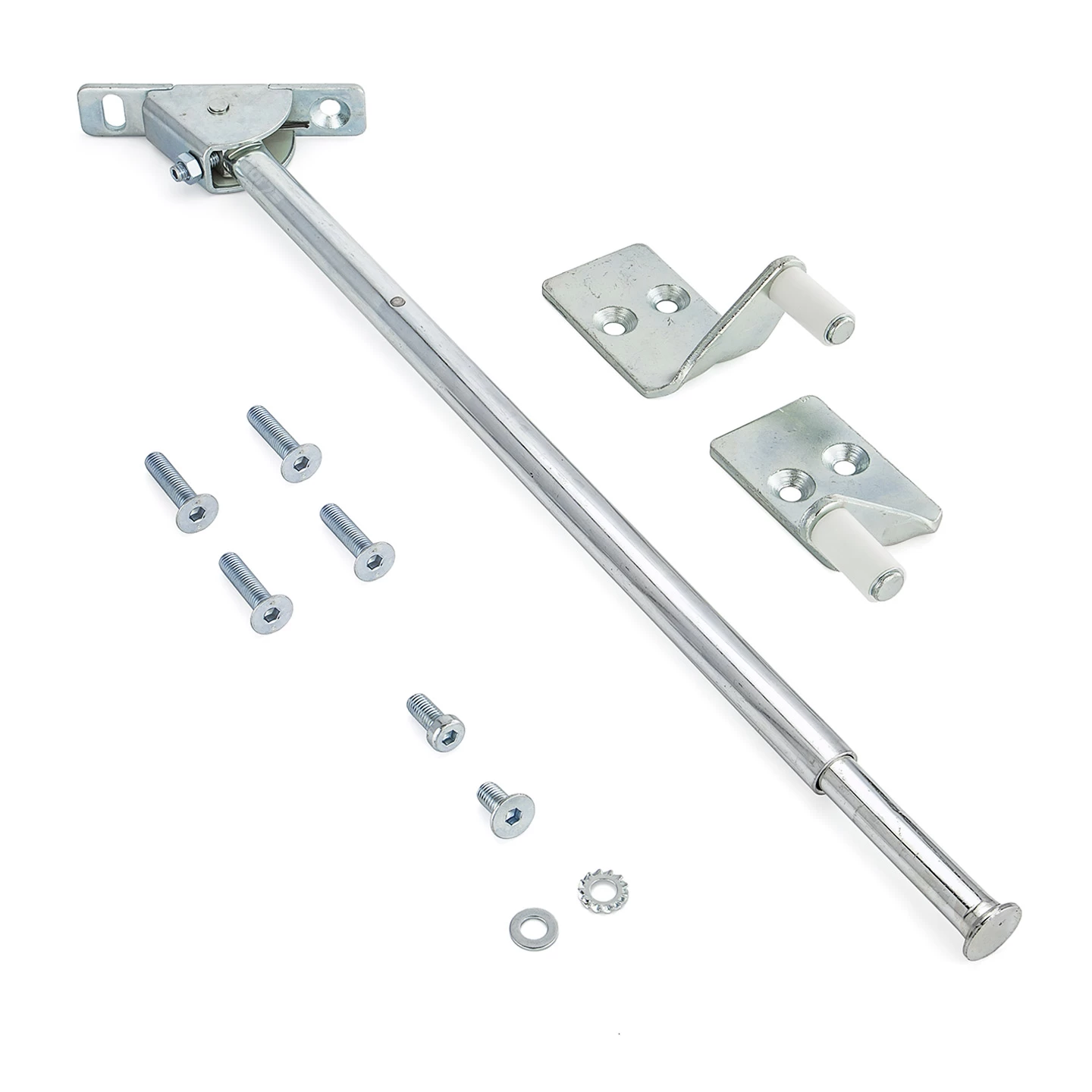 Ein Hörmann mechanischer Schließfolgeregler, Basis 2 besteht aus einem ausklappbaren, gefederten Ausleger, der am Türrahmen angebracht wird und zwei Stützwinkeln, die sich an den Türflügeln befinden. Der Ausleger ist außerdem mit einer gekonterten Einstellschraube ausgestattet, womit sich dessen Auslegewinkel verstellen lässt. Wird der Standflügel geöffnet, so klappt sich der Ausleger aus. Dieser blockiert über einen der zwei Stützwinkel den Gangflügel und verhindert so dessen Zugehen. Erst wenn der Standflügel fast geschlossen ist, drückt der daran angebrachte zweite Stützwinkel den Ausleger gegen die Wand, wodurch sich dann auch der Gangflügel schließen kann.