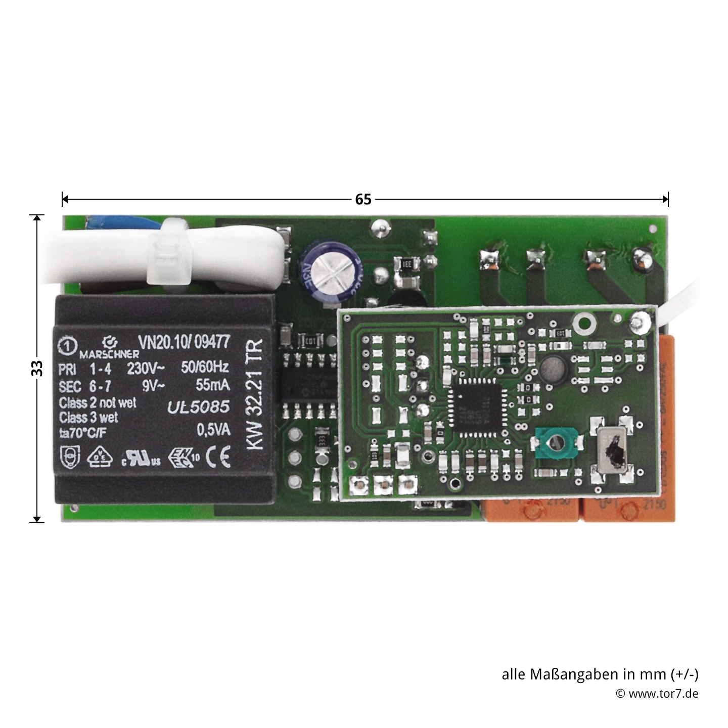 - Reichweite: bis zu 30 Metern, örtliche Gegebenheiten (Beton, Stromkabel, Sendemasten) können negativen Einfluss auf die Reichweite des Handsenders nehmen