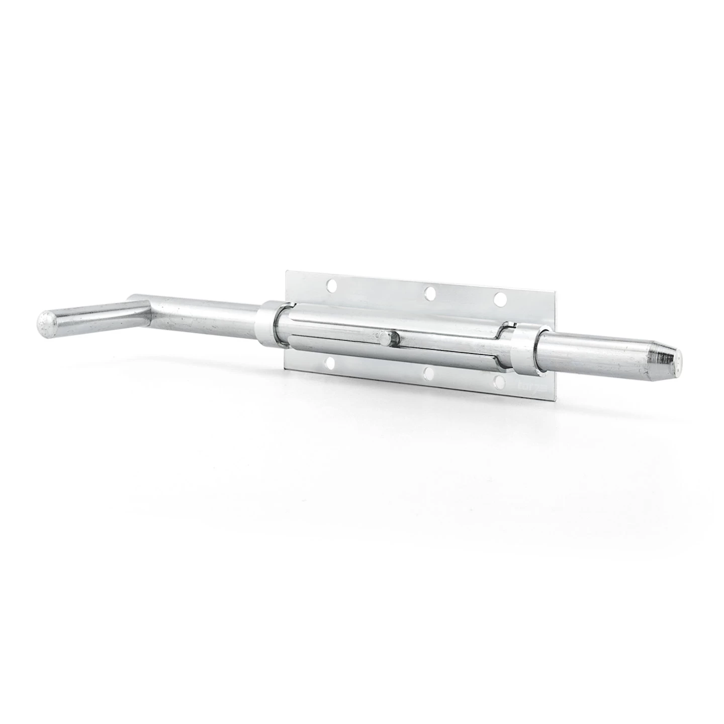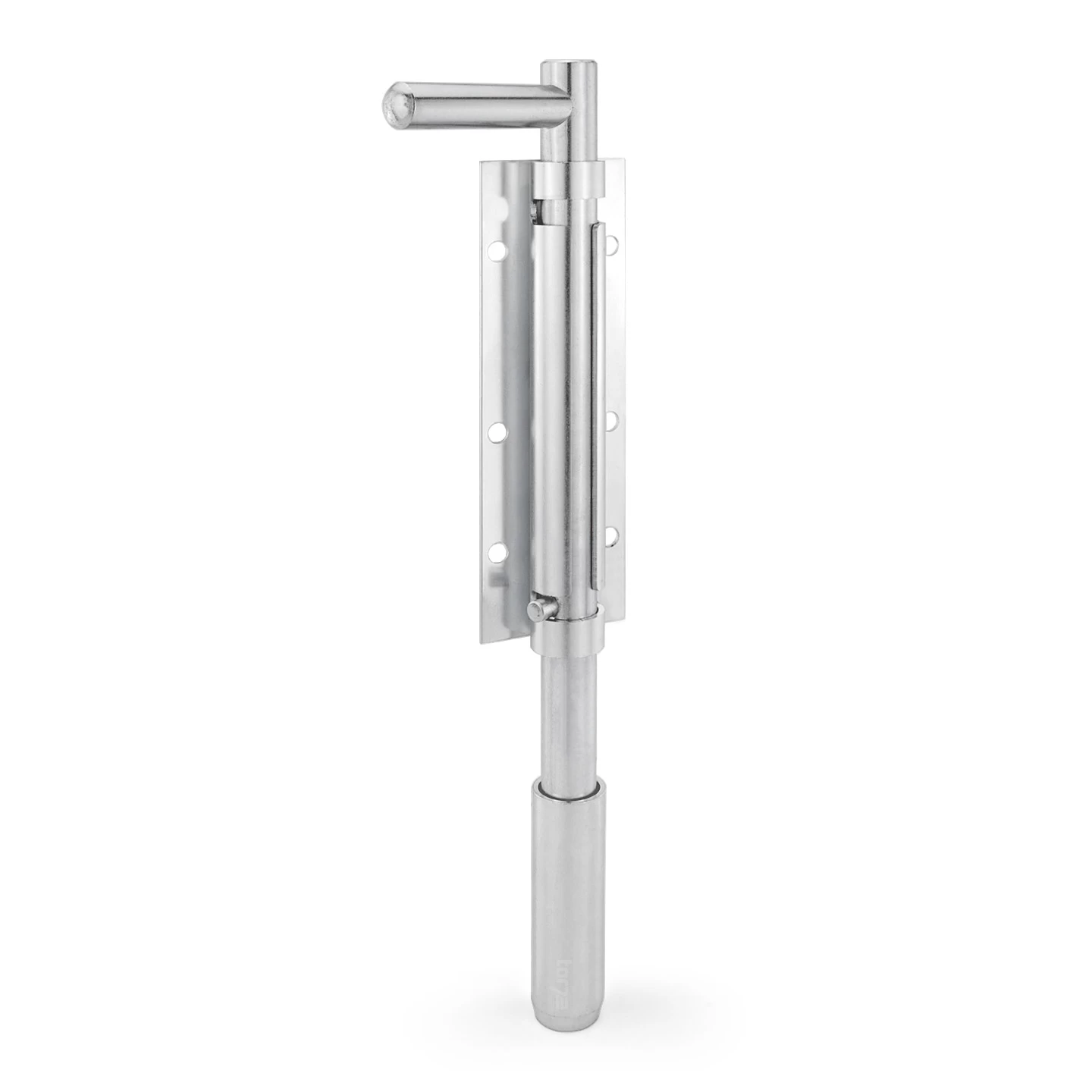 Das Stockriegelset besteht aus drei Teilen, dem eigentlichen, hier 300 mm langen Stockriegel, einer Stockriegelführung zur Montage am Torflügel sowie eine Bodenhülse, die an entsprechender Stelle im Boden eingelassen wird. Neben einem Griff ist der Riegel mit einer kleinen Nase für die Führung versehen, womit sich diese ganz einfach in die vorgegebenen Positionen verriegelt und entriegelt einstellen lässt. Alle drei Teile des Stockriegels sind aus Stahl gefertigt und zwecks Korrosionsschutzes verzinkt.