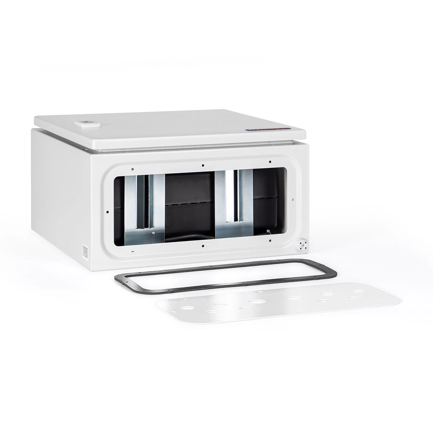 Allerdings ist der Akku WA 24 nicht für die Verwendung im Freien geeignet, weshalb dessen Nutzung in Verbindung mit einem Einfahrtstorantrieb schwierig ist. Daher wird bei Akku-Einfahrtstorantrieben ein wettergeschützter Schaltschrank mitgeliefert, in welchem der Antriebsakku untergebracht werden kann. Zusätzlich werden ein passendes Ladegerät, ein Laderegler und eine Verbindungsleitung mitgeliefert. Damit ist es möglich, den Akku auch während des Betriebs über ein Solarmodul wie z. B. das Hörmann Solar-Modul SM 24-1 für RotaMatic Akku Drehtorantriebe zu laden.