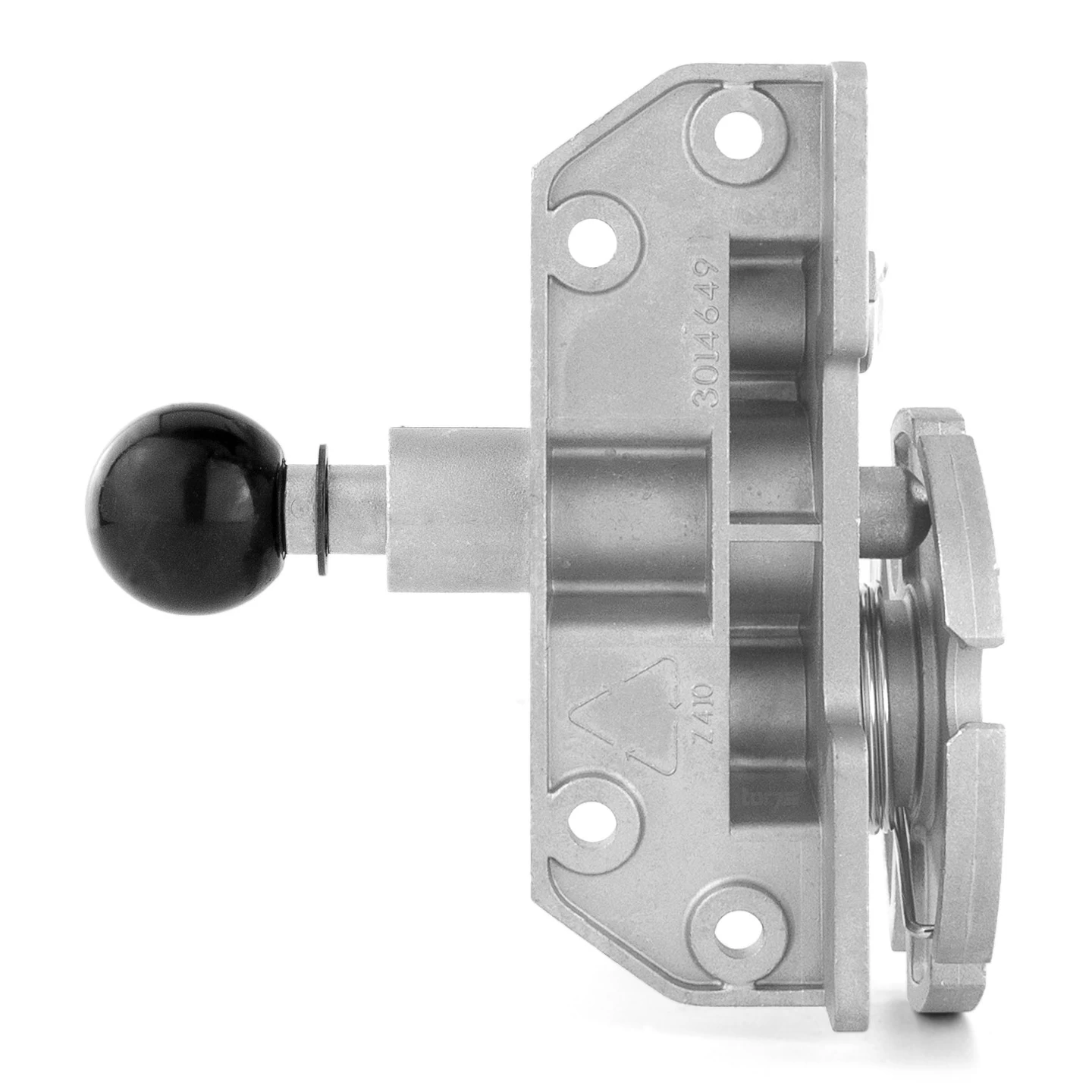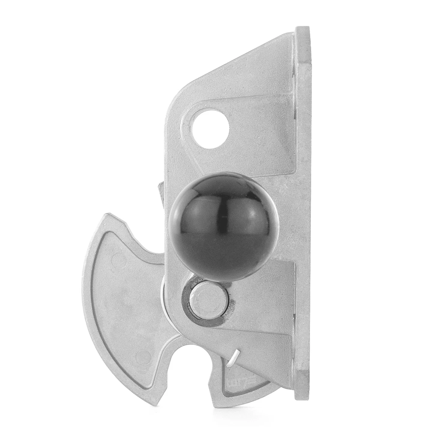 Diese Innenverriegelung besteht aus einem Drehriegel, der auf die rechte Torseite ausgerichtet ist. Zur Bedienung ist ein Kugelknauf angebracht, über den sich der Riegel ein- und ausdrehen lässt. Da es sich um einen einfachen Innenriegel handelt sind keine weiteren Teile wie z. B. ein Schubriegelgestänge oder eine Torgriffgarnitur erforderlich. Eine solche Hörmann Verriegelung Innenbedienung, Drehriegel rechts sollte allerdings nur an Toren und Objekten verwendet werden, zu denen es mindestens einen weiteren Zugang gibt.