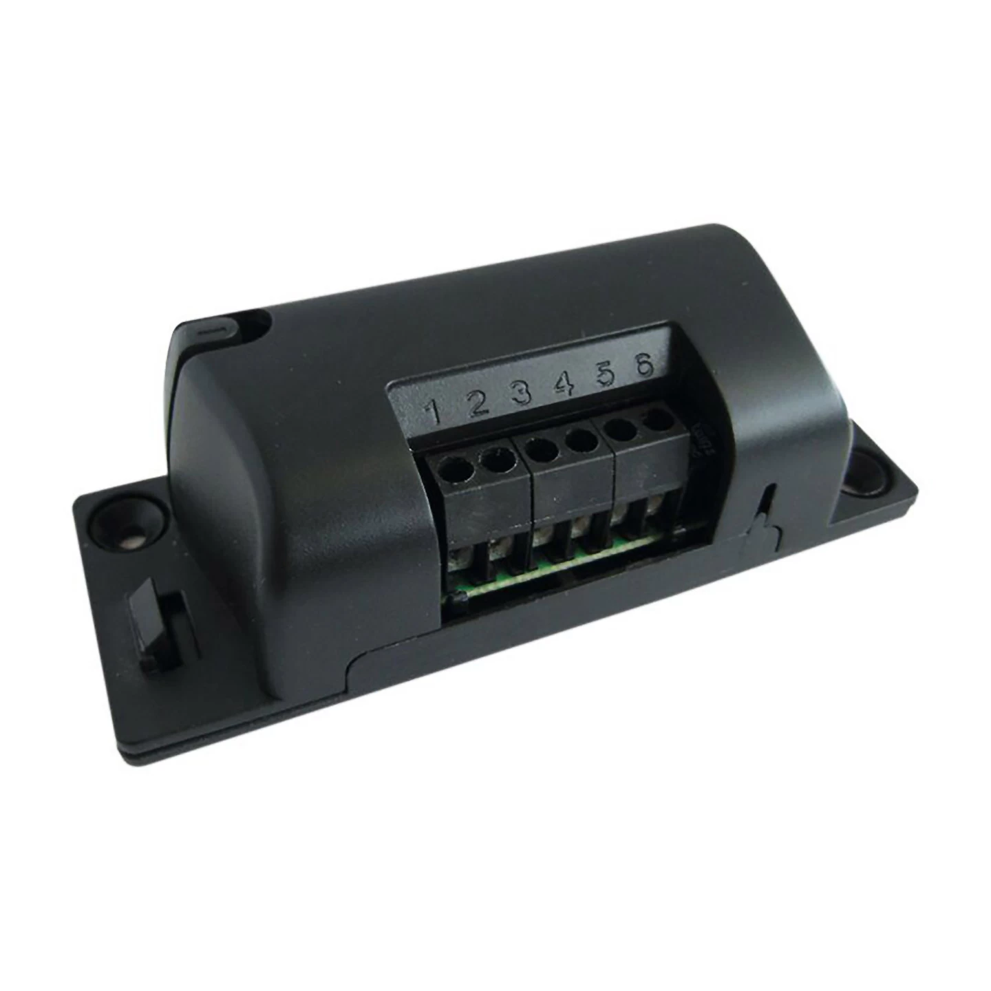 An der Seite des Empfängers befinden sich sechs Steckplätze. Zwei davon dienen als Eingänge für eine Niederspannungs-Stromversorgung (12 – 24 V AC/DC), die übrigen vier sind die potentialfreien Ausgänge der zwei vorhandenen Schaltrelais. Der SOMMER Funkempfänger beherbergt zusätzlich ein Speichermodul, auf den sich bis zu 112 verschiedene Funkcodes abspeichern lassen. Jeder dieser Codes steht für eine Handsendertaste, die einen Befehl am Funkempfänger auslösen kann.