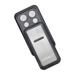 Der hier erhältliche Handsender Slider+ ist speziell zur Bedienung von SOMMER-Torantrieben mit eingebautem SOMloq2-Funkempfänger vorgesehen. Es besteht zudem eine Abwärtskompatibilität zu SOMloq Rollingcode, wodurch der Sender auch als Ersatz für das ältere Modell Slider geeignet ist. Die Besonderheit der Slider-Sender ist deren kompaktes Gehäuse aus stabilem Kunststoff und Edelstahl, sowie der darin eingebaute Schieber, der die Tasten vor unbeabsichtigter Betätigung schützt. Mit denen darunter befindlichen vier Funktionstasten lassen sich insgesamt vier Befehle verteilt auf bis zu vier Torantriebe programmieren.