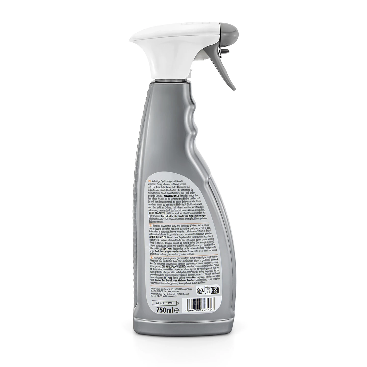 Zur Anwendung wird der in der Sprühflasche befindliche Reiniger auf die betroffene Oberfläche gesprüht und mit einem Schwamm oder Bürste verrieben. Anschließend sollte man den Reiniger samt gelöstem Schmutz mit einem feuchten Microfasertuch aufwischen und dieses dabei immer wieder mit klarem Wasser ausspülen. Weiterhin ist darauf zu achten, immer den gesamten Bereich wie die ganze Sitzfläche zu behandeln. Bei empfindlichen Oberflächen wird geraten das Produkt an einer unauffälligen Stelle zu testen, bevor man es anwendet. Allgemein darf der Reiniger nicht antrocknen und nicht auf heißen Oberflächen sowie bei Frost verwendet werden.