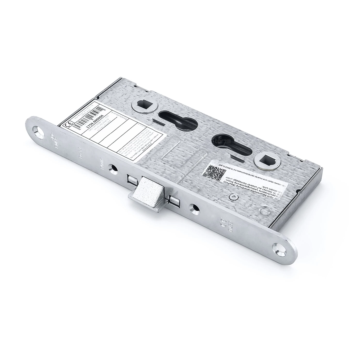 Das links/rechts verwendbare Teckentrup Einsteck-Panikschloss 1759 mit der Wechselfunktion E kann als Ersatz oder für die Erstausstattung bei Türen eingesetzt werden, die mit einer Wechselgarnitur, also einer Drücker/Knauf-Kombination, ausgestattet sind. Hierbei eignet sich diese Schlossausführung speziell für Teckentrup Stahlblechtüren mit Dünnfalz und 42 mm starkem Türblatt, wie beispielsweise der Teckentrup DW 42 oder HT 8. Die der DIN EN 179 / EN 1125 entsprechende Fluchttürfunktion gewährleistet, dass jederzeit ein Durchtritt der Tür in Fluchtrichtung auswärts möglich ist, wie beispielsweise bei Flucht- und Rettungswegen. Der fest gelagerte Knauf auf der Türaußenseite macht den Zutritt in Gegenrichtung hingegen nur mit einem Schlüssel möglich. Verwendbar ist für dieses Panikschloss jede zugelassene Wechselgarnitur, wobei durch die PZ-Lochung ein handelsüblicher Profilzylinder eingesetzt werden kann. Das Schloss verfügt hierbei über keinen Riegel, sondern wird über die Falle eintourig ausgefahren, womit eine Grundsicherheit gewährleistet ist. Durch die genormten Schlossabmessungen und eine gültige Zulassung für Brand-/Rauchschutzabschlüsse ist auch die Montage bei entsprechenden Funktionstüren sowie Fremdfabrikaten möglich.
